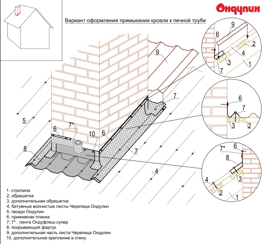 • кровли и печной / вентиляционной трубы,
